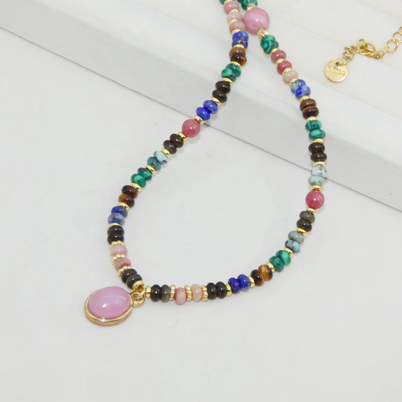 Modisches französisches Rhodonit-Kristall-Halsketten-Layering mit Titanstahlkette — günstig online bei Joom kaufen
