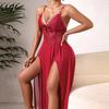 Sexy Spitze Tiefer V-Ausschnitt Cami Nachthemd Hoher Schlitz Lang Durchsichtig Mehrfarbig Damen Loungewear Schlafanzug 898 Wagemutig Feminin Nachtwäsche Ideal für Romantische Dates