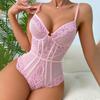 Europäischer und Amerikanischer Stil Damen Teddy, Ultra-dünner Spitzen-Spaghetti-Träger Bodysuit, Schlankmachende Push-Up Sexy Dessous