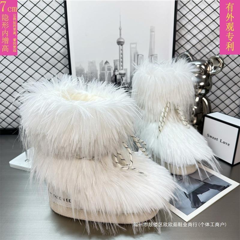 Dicke Sohle Innenhöhe Erhöhung Schneestiefel Damen Winter Gestapelt Verdickt Mittleres Rohr Flauschige Schuhe Rutschfest Warm Mondstiefel Kleine Größe — günstig online bei Joom kaufen