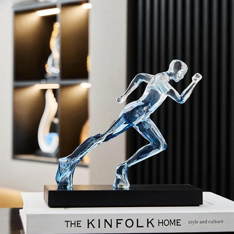 Exquisite blaue Kristall-Skulptur eines laufenden Mannes für Heim- und Bürodekoration Einzigartige Kristall-Läufer-Figur Weiße Skulptur