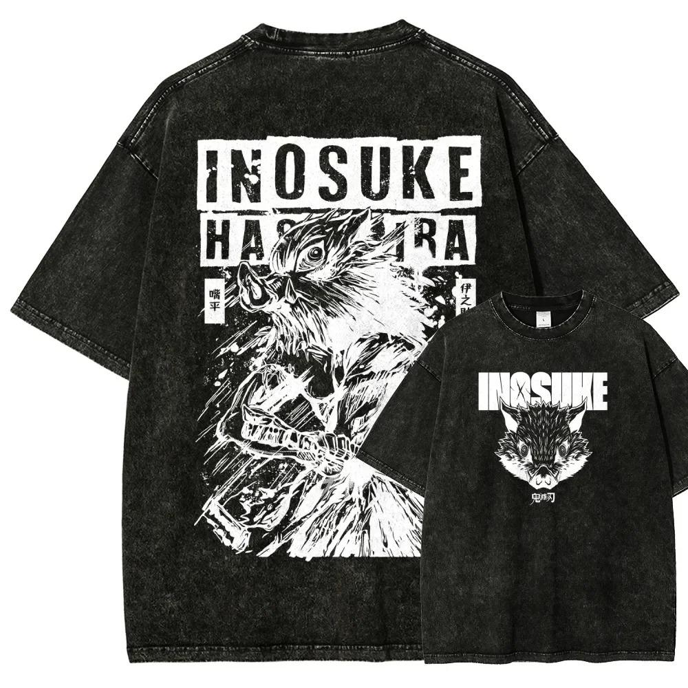Hashibira Inosuke Print T-Shirt Dämonentöter Anime Übergroße Kleidung Herren Damen Baumwoll-T-Shirts Retro Gewaschenes Tee Harajuku Tees Damen Herren Kleidung