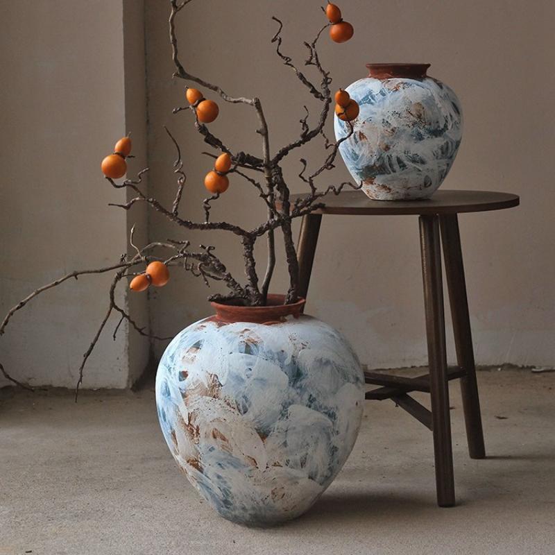 Coarse Earthenware Pot Flower Vase Flower Arrangement Accessories Retro Chinese Ceramic Vase Flowerpot Home Decoration
