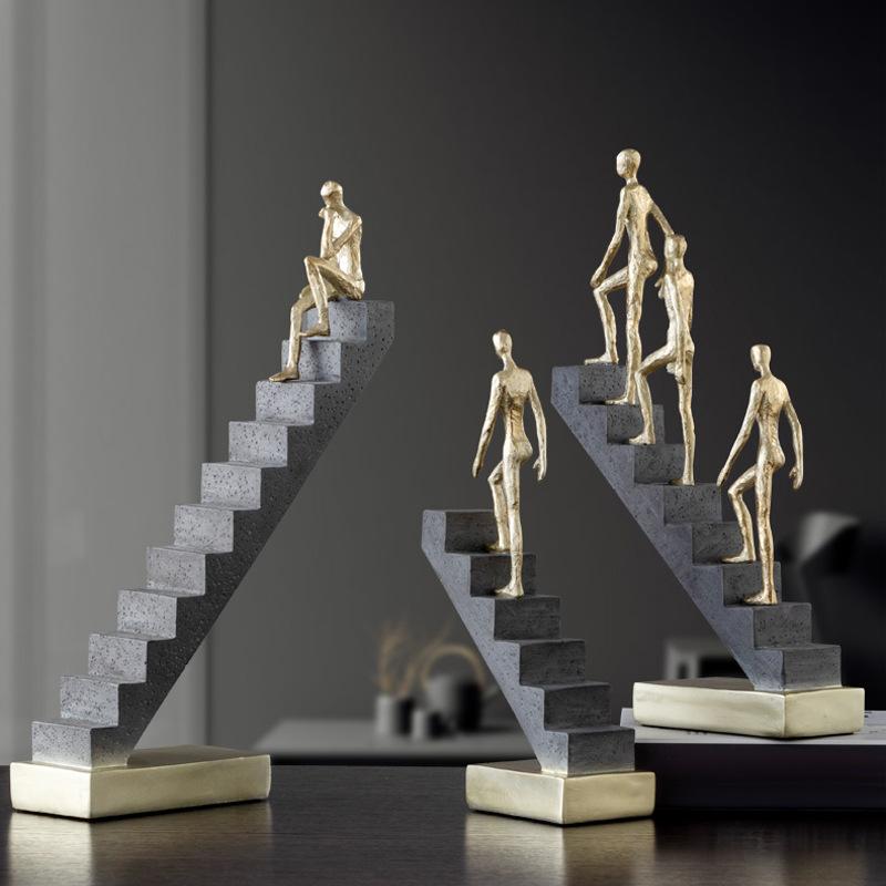 Harz-Handwerk Figur Skulptur Treppenleiter Goldener Mann Abstrakte Dekorative Figuren Raumdekoration Zubehör — günstig online bei Joom kaufen