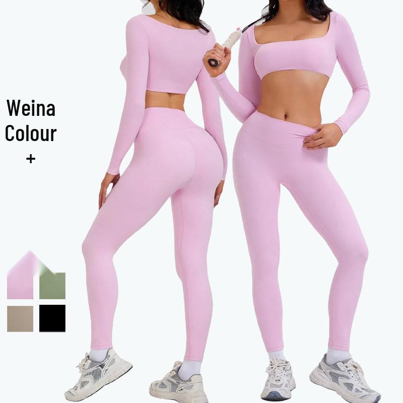 Damen Cross-Border Yoga-Set: High-Waist Leggings & Sexy Langarm-Top für Fitness im Freien — günstig online bei Joom kaufen