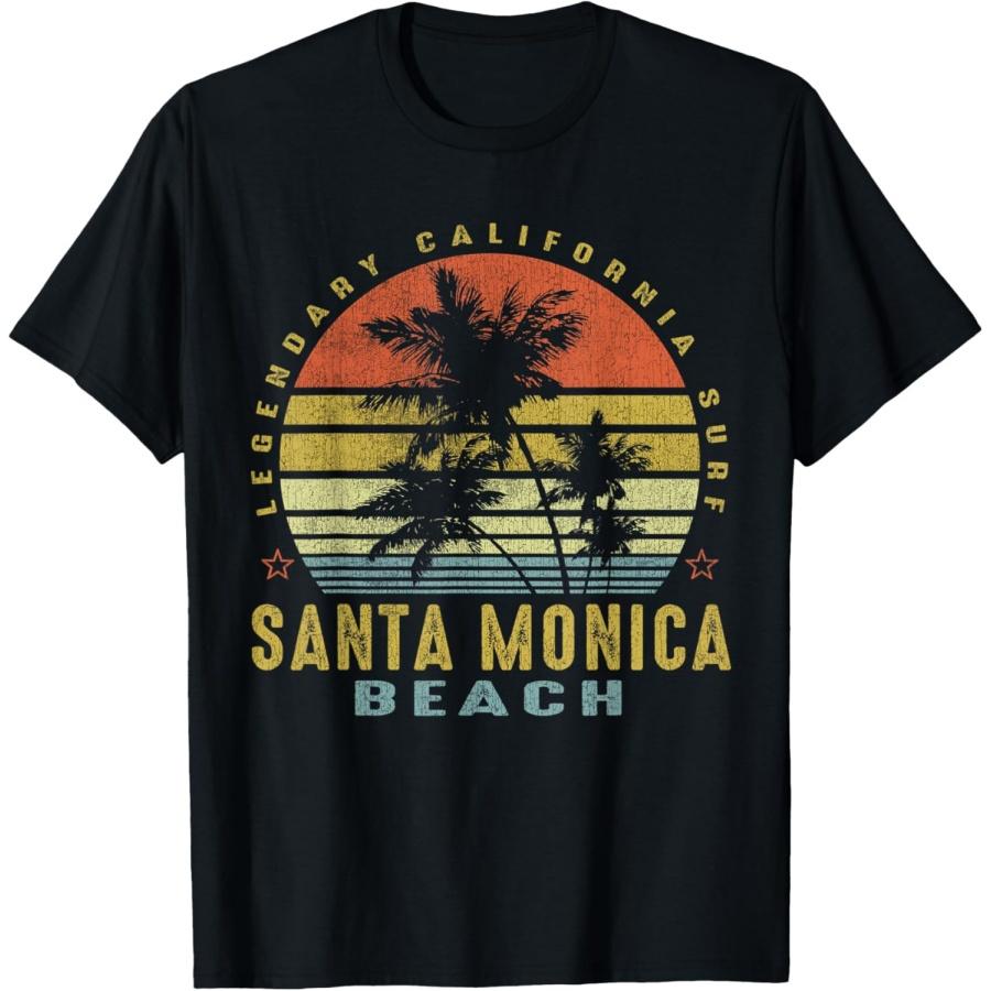 Santa Monica Beach Retro Palmen Sonnenuntergang - Strandgeschenk T-Shirt — günstig online bei Joom kaufen