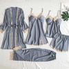 Seiden-Blumen-Pyjama-Set: 5-teiliges goldenes Camisole mit integriertem BH