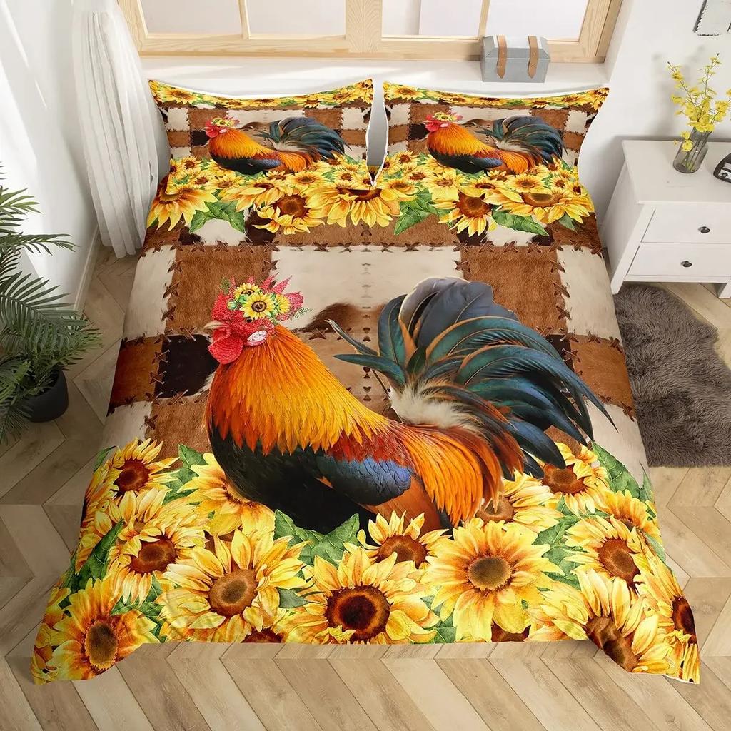 Bauernhoftier Huhn Bettbezug Einzel- King-Size Land Sonnenblume Hahn Bettdeckenbezug Mikrofaser Rustikales Bauernhaus Bettwäscheset — günstig online bei Joom kaufen