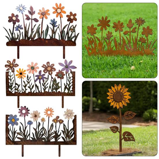 Rusty Flower Garden Stake Decoration Weather-proof Indoor Outdoor Yard Lawn Patio Pathway Metal Floral Silhouette Sign Stake Ornament — günstig online bei Joom kaufen