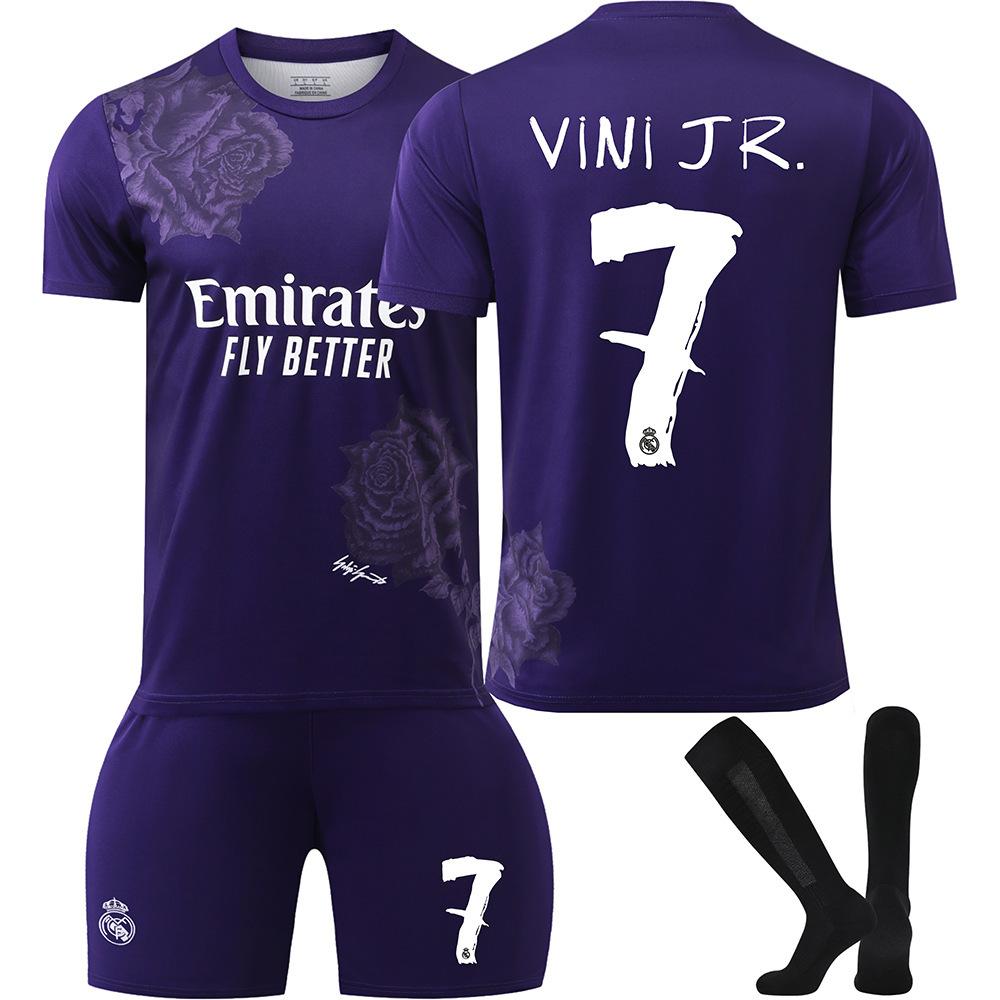 Jugendliche Kinder Erwachsene Benutzerdefinierter Name Fußballtrikots 24/25 Real Madrid Y3 Lila #7 VINI JR Sport Trainings Trikot Set mit Socken