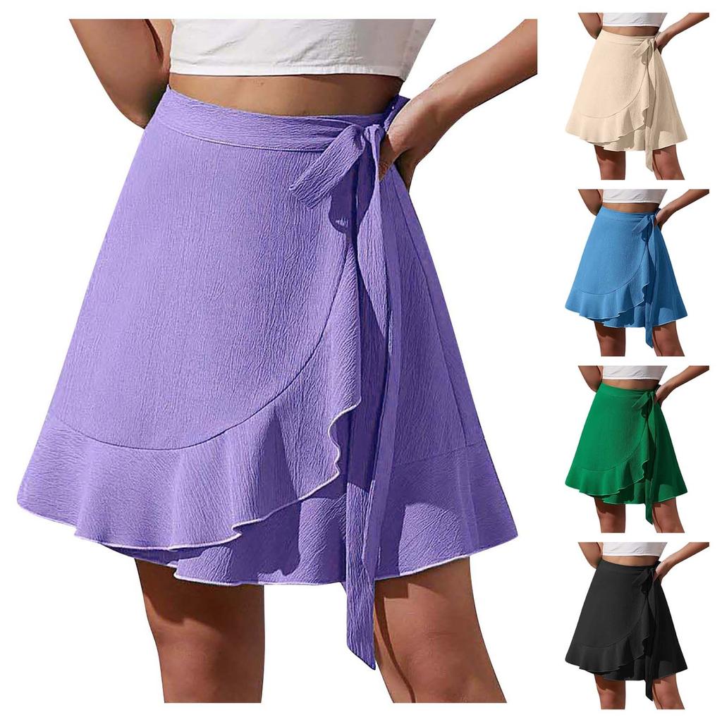 Damenrock Bindegürtel Chiffonrock Hohe Taille Farbe Rüschenrock — günstig online bei Joom kaufen