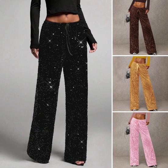 Diese Damen-Freizeithose ist aus hochwertiger Polyesterfaser gefertigt, die ein weiches, hautfreundliches Tragegefühl für ganztägigen Komfort gewährleistet.. Diese Hose mit einem glamourösen, hoch taillierten Design, das mit eleganten Pailletten verziert ist, verleiht jedem Outfit einen funkelnden Touch..