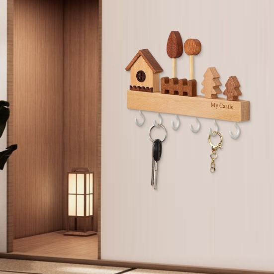 Rustic Wood Key Hanger Hanger with Decorative Wall Mounted 6 Hooks Entrance Key Hanger for Keys — günstig online bei Joom kaufen