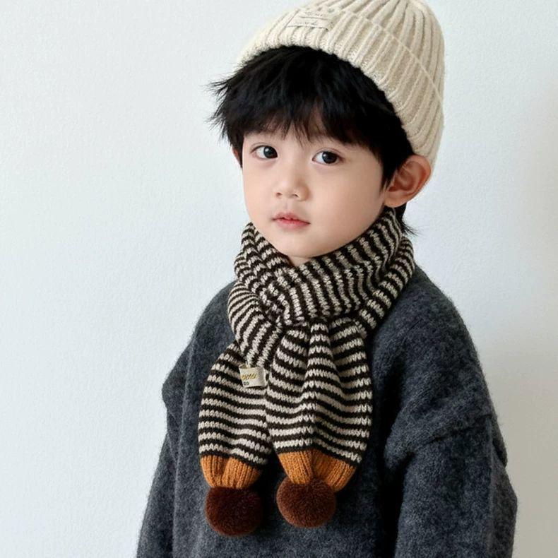 Chic Baby Pom-Pom Knit Scarf: Color Block, Unisex, Warm Wool