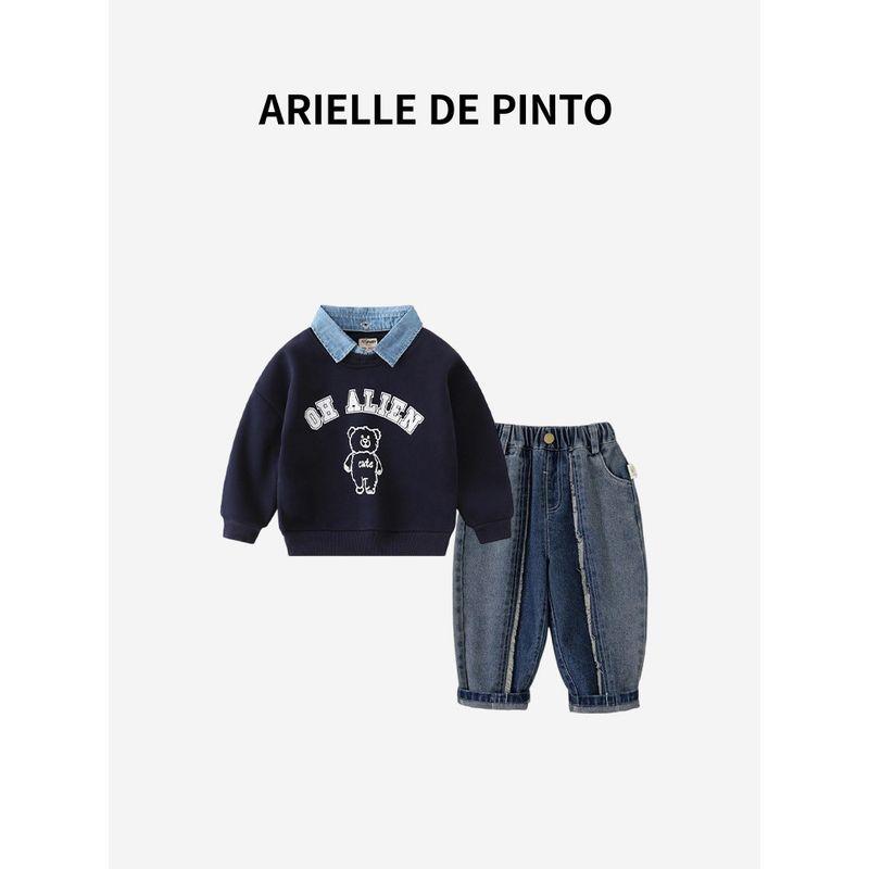 French Arielle De Pinto Boys' Suit Spring and Autumn Style Korean Style Casual Lettered Lapel Cartoon Two-Piece Set