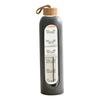 Glaswasserflasche 1 Liter Fassungsvermögen Trinkflasche mit Zeitmarkierung Silikonhülle Auslaufsicherer Ausgießerdeckel Weiter Mund Wasserbecher