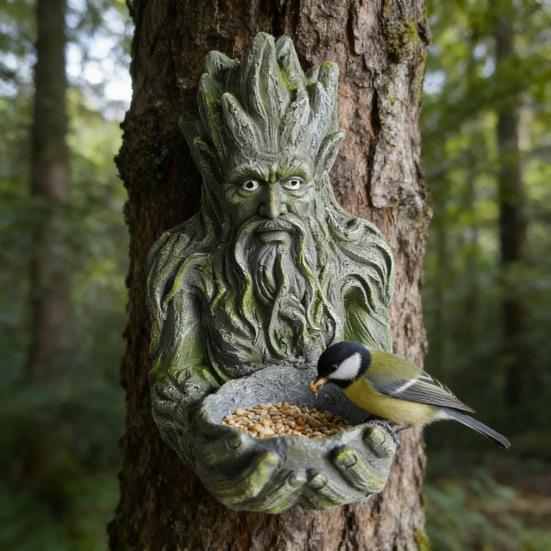 Faszinierende natürliche Ästhetik: Inspiriert von der mythischen "Baummensch"-Geschichte, dient dieser Vogelhäuschen gleichzeitig als ruhige Gartendekoration.. Sein kunstvolles Design fügt sich harmonisch in die umgebenden Bäume, Blumen und Tiere ein und schafft eine friedliche Atmosphäre im Freien.. Die lebensechte Skulptur verleiht einen bezaubernden Touch, der die natürliche Schönheit jeder Grünfläche unterstreicht.