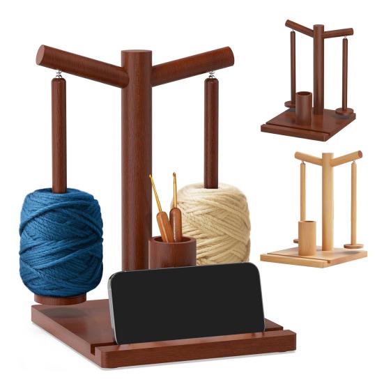 Multifunktionaler Garnhalter mit integriertem Stauraum: Dieser hölzerne Garnhalter verfügt über spezielle Schlitze für Häkelnadeln und Zubehör, damit Ihre Bastelwerkzeuge organisiert und griffbereit bleiben.. Es enthält auch einen praktischen Handy-Ständer, der es Ihnen ermöglicht, Video-Tutorials zu verfolgen oder Unterhaltung freihändig zu genießen, während Sie an Ihren Projekten arbeiten, was sowohl die Produktivität als auch den Genuss steigert.