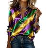 Damen Hemd Kragen Langarm Mardi Gras Gestreiftes Print Hemd Oberteile Knöpfe Knopfleiste Lockere Passform Karneval Outfit Party Oberteile Weicher Stoff Festival Kleidung