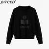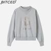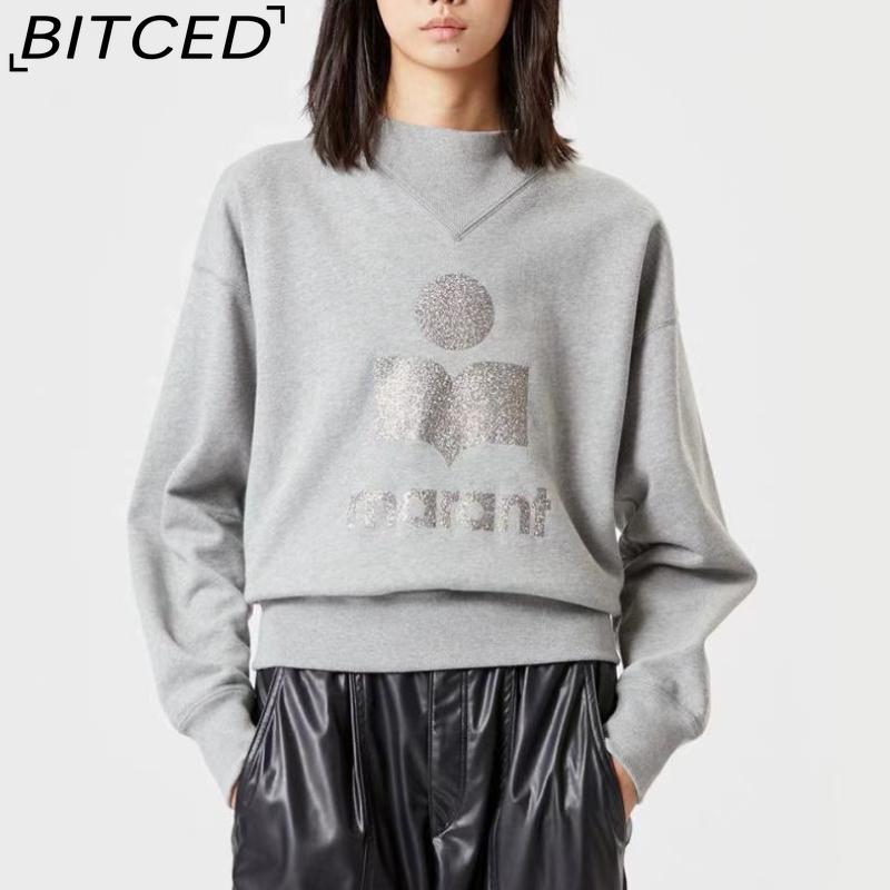 BITCED Damen Herbst/Winter Glitzer-Print Halbhoher Kragen Baumwolle Stehkragen Sweatshirt