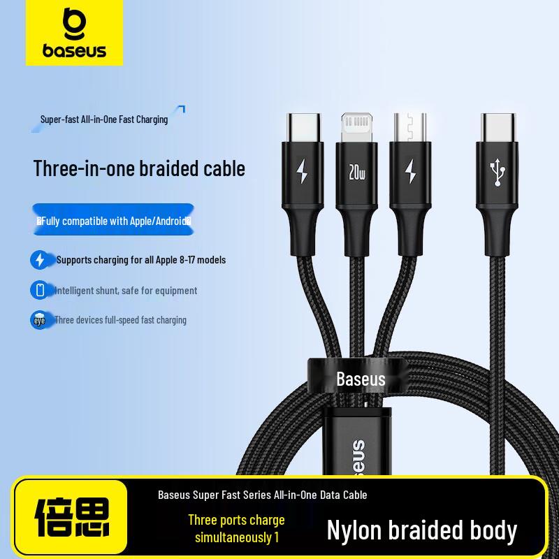 Baseus 3-in-1 PD 20W/27W Fast Charging Cable (Type-C to M+L+C)
