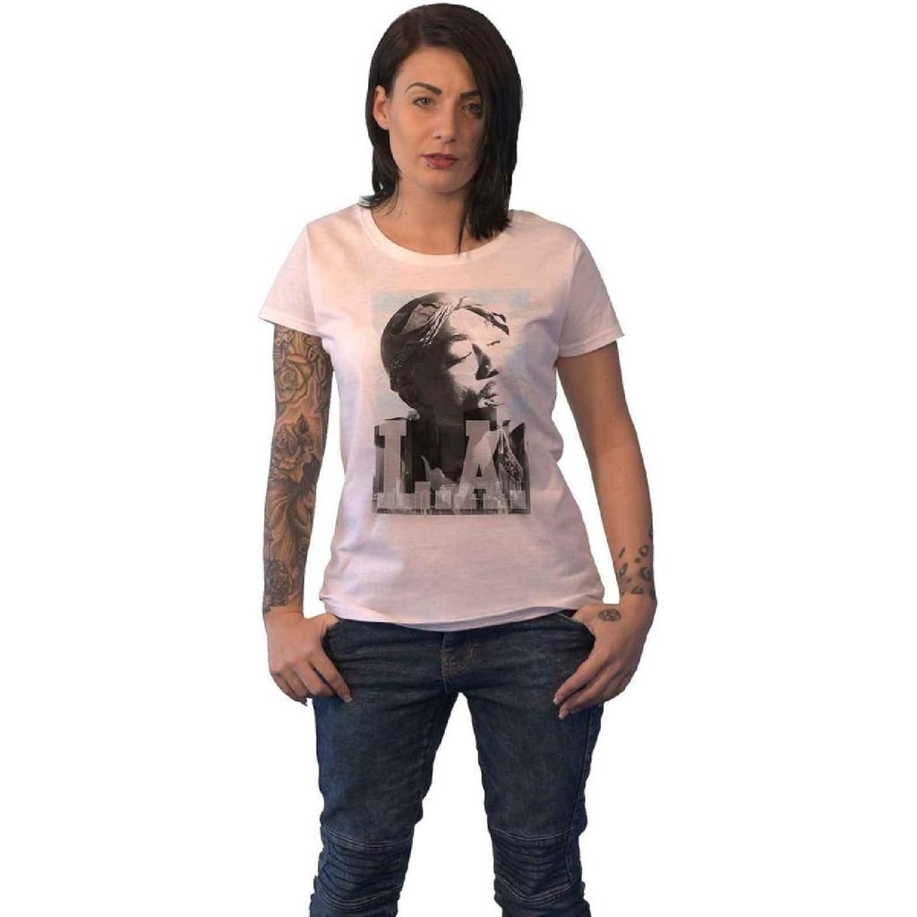 Tupac T-Shirt La Skyline Logo Neu Offiziell Damen Skinny Fit Weiß — günstig online bei Joom kaufen