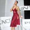 Spitzenpatchwork Nachthemd mit hohem Schlitz Eingebauter BH Langes Satin-Camisole Damen Bequeme Loungewear 979 Stützende Elegante Nachtwäsche mit schmeichelhaftem Design