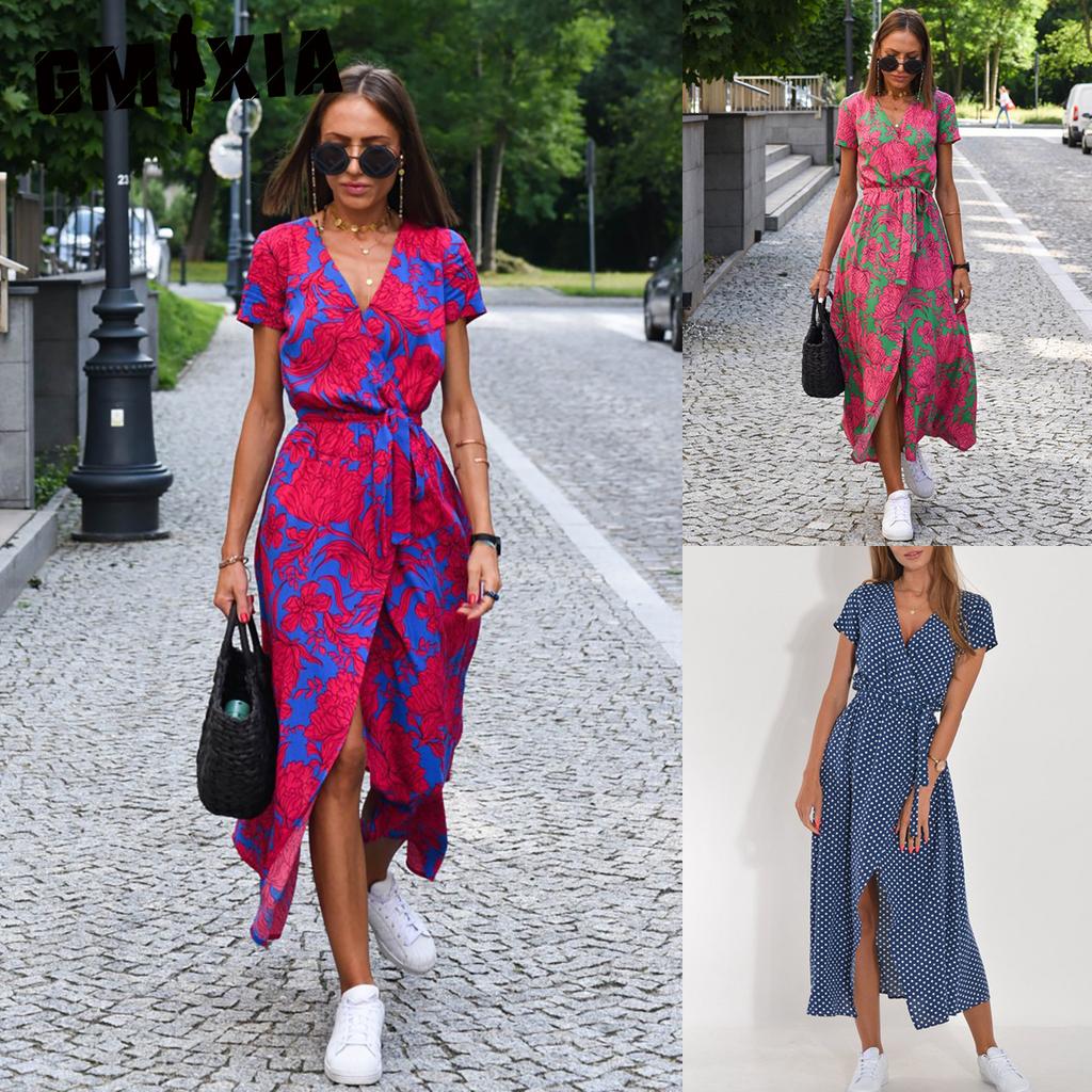 GMXIA Damenmode Sommer Frühling Kurzarm V-Ausschnitt Freizeitkleider — günstig online bei Joom kaufen