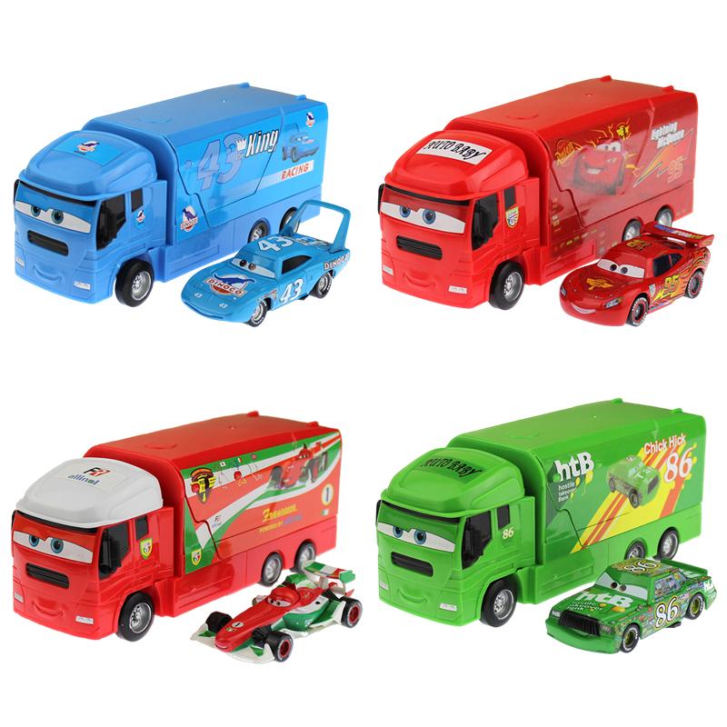 Disney Pixar Cars LKW mit Auto Lightning McQueen Legierung Metall Modell Der König Chick Hicks Diecast Metall Rennen Kinder Weihnachtsgeschenk