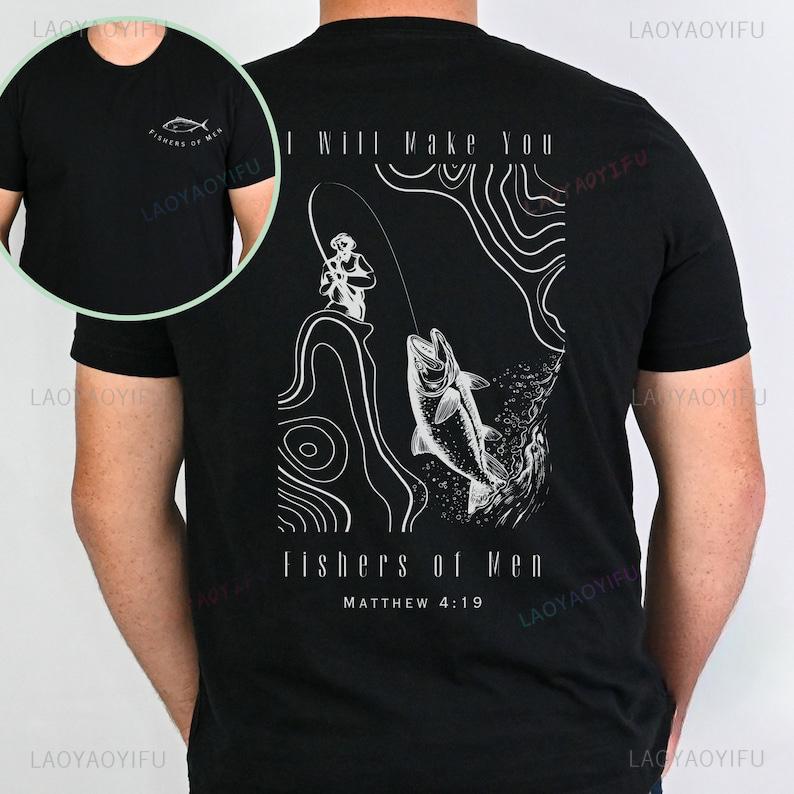 Fisher of Men Religious Apparel Dad Faith Printed Tshirt Mens Gifts Fathers Day Fishermen Tshirt Bible Verse Christian Clothing