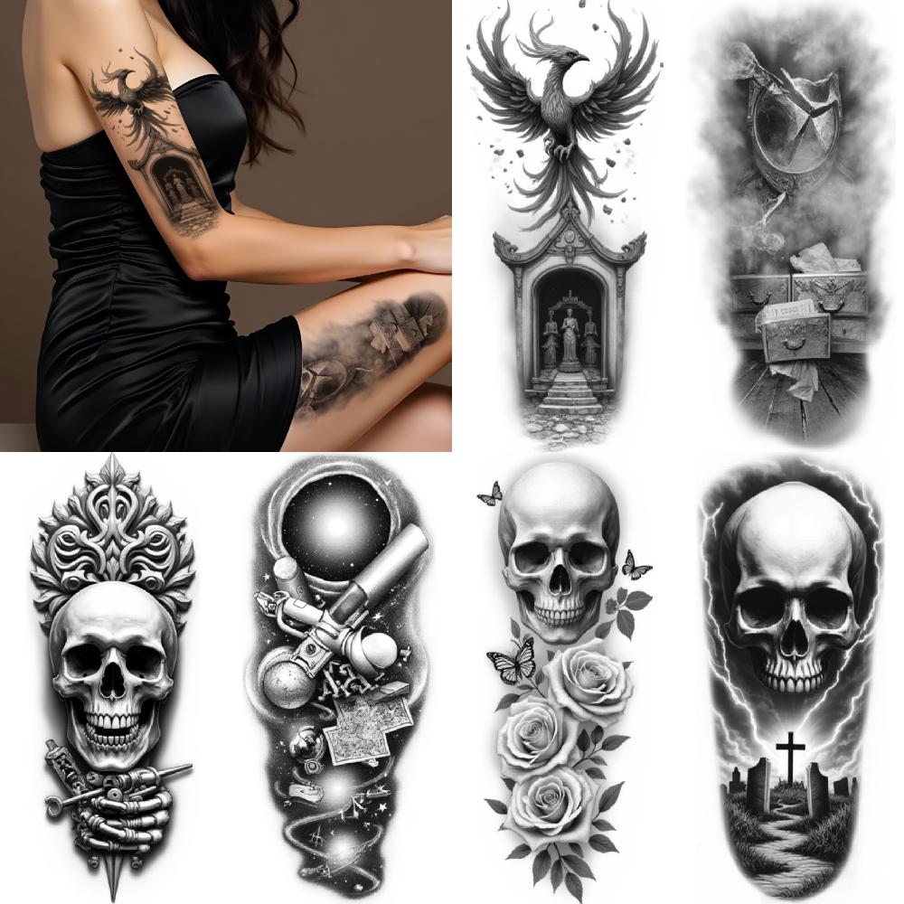 3 Stück Temporäre Tattoos Realistische Temporäre Tattoos Verzierter Totenkopf Totenkopf Tattoo Kapuzen-Skelett Für Erwachsene Männer Oberschenkel — günstig online bei Joom kaufen