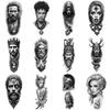 12 Stück Temporäre Tattoos Schwarz Grau Realismus Kleopatra Frau Indianerhäuptling Für Frauen Männer Oberschenkel
