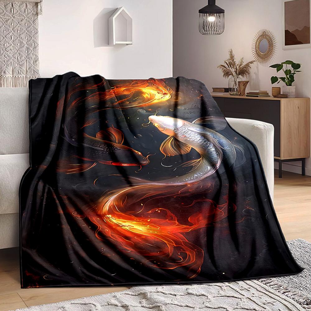 1pc Koi Fish Yin Yang Blanket, Lightweight Flannel Throw For Sofa, Bed, Travel, Camping, Livingroom, Office, Couch, Chair — günstig online bei Joom kaufen