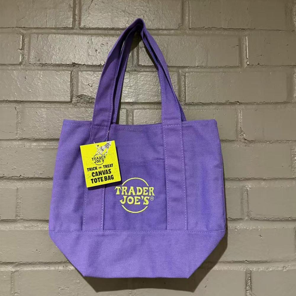 Official Trader Joe's Trick or Treat Tote Bag - Purple Reusable Canvas Bag for Groceries Cycling Errands Cafe Outings