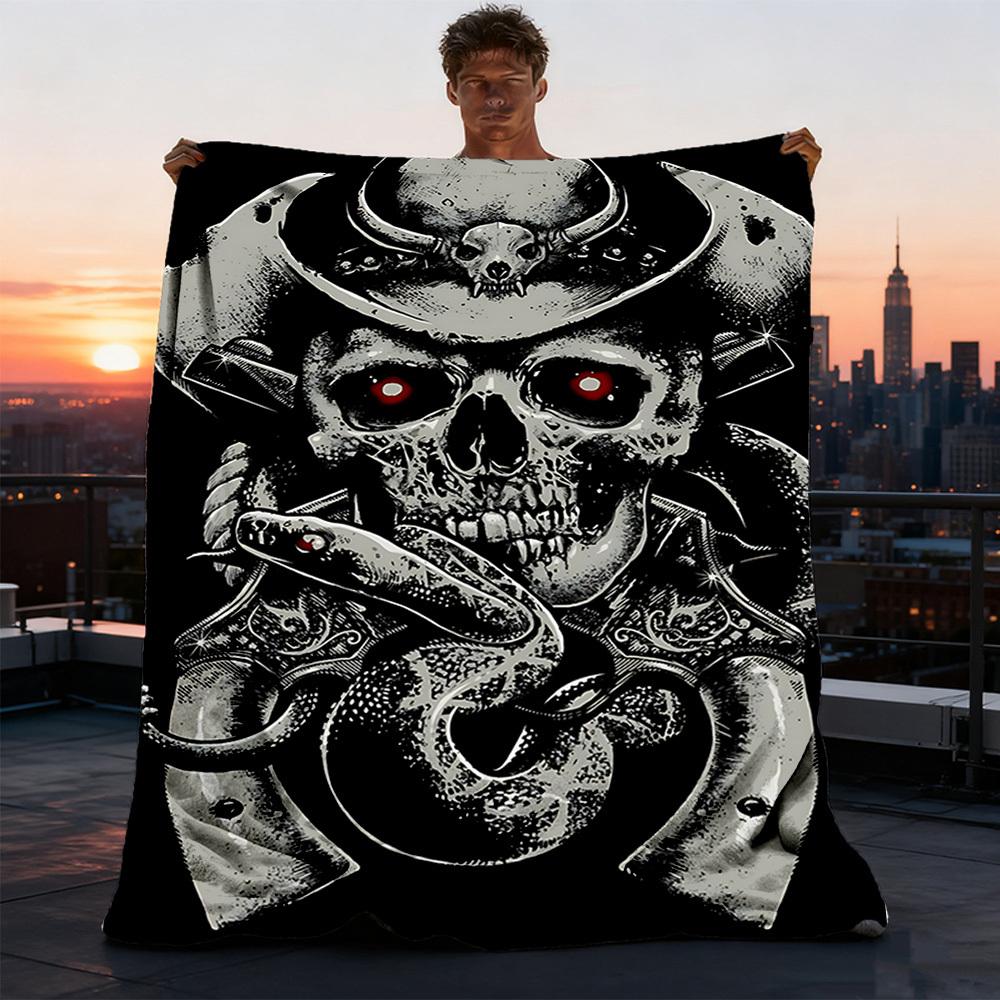 1pc Skull Snake Print Throw Blanket Polyester Fiber, Lightweight Flannel, Soft & Warm, All Season Use for Outdoor, Camping Digital Print