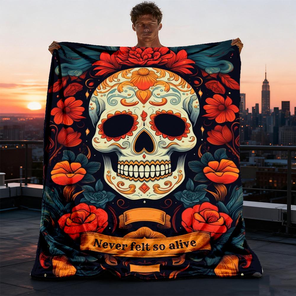 1pc Sugar Skull Decor Throw Blanket Polyester Fiber, Lightweight Flannel, Soft & Warm, All Season Use for Outdoor, Camping Digital Print — günstig online bei Joom kaufen