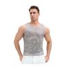 Herren Pailletten Weste Funkelnd Rundhals Ärmellos Shirt Durchsichtig Sexy Tanktop für Musikfestival Rave Nachtclub Bar Party