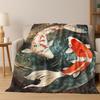 Luxuriöse Glückskarpfen Yin Yang Karpfen Cartoon Flanell Decke, Gemütliche Weiche Überwurfdecke für Zuhause Schlafzimmer Bett Sofa Abdeckung Geschenk Kind