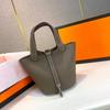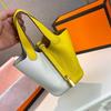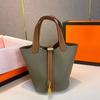 Hochwertige halbhandgefertigte Gemüsekorbtasche togo erste Schicht Rindsleder Pendlertasche echtes Leder tragbare Beuteltasche Damen 18cm
