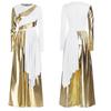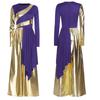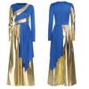 S-3XL Versatile Praise Dance Wear: Eye-Catching Metallic Patchwork Jumpsuit Featuring an Artistic Irregular Drape Design