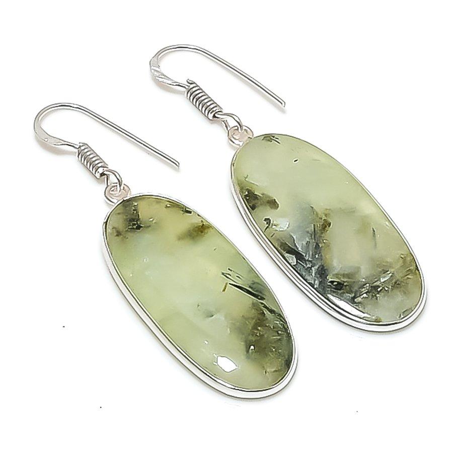 Natürlicher Prehnit Edelstein Handgefertigter 925 Sterling Silber Ohrring 5,2 cm AE-11383
