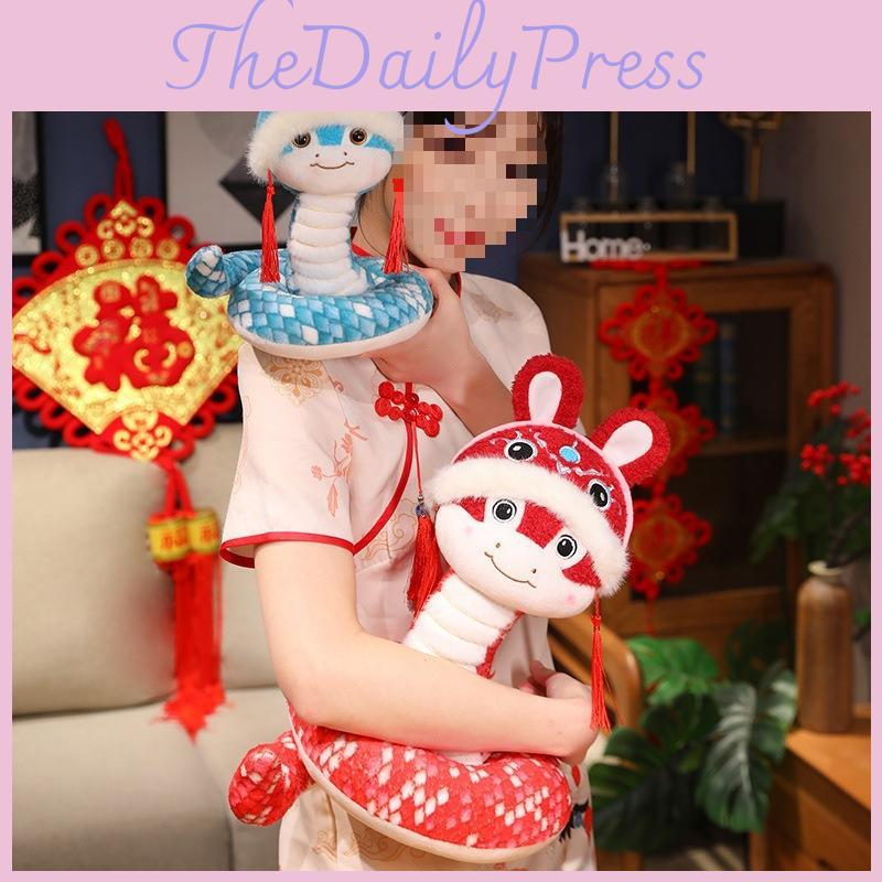 Adorable Elegant Snake Plush Toy Soft Crystal Material Decorative Figurine In Red Pink And Blue
