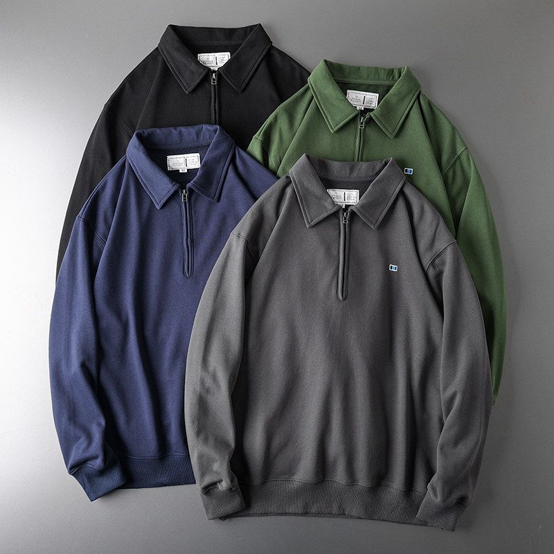 Heavy Weight Half Zipper and Lapel American Spring & Fall Coat Sweatshirt