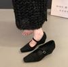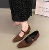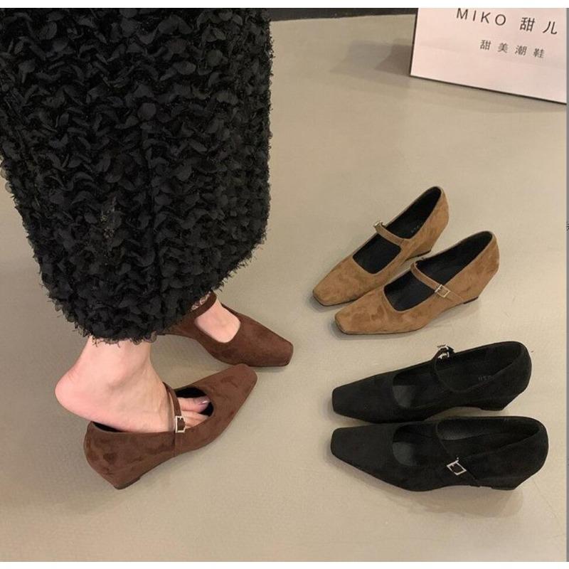 Retro Velvet Mary Jane Shoes Women's Wedge Shoes Spring Autumn New Summer Skirt Evening Versatile Commuting High Heels Shoes