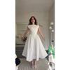 Europäische und amerikanische Damenbekleidung Sommer Neu Französisches Temperament Schlank und Dünn Großer Saum Rückenloses A-Linien-Kleid