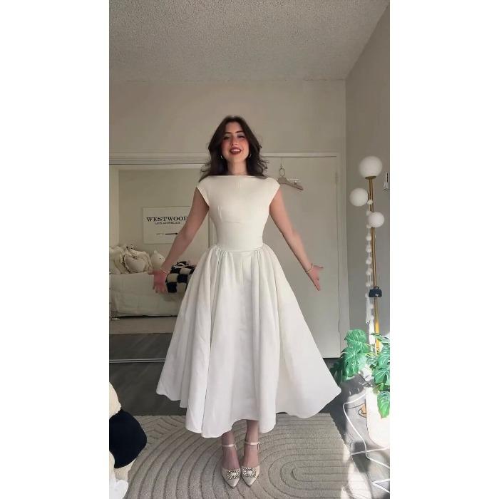 Europäische und amerikanische Damenbekleidung Sommer Neu Französisches Temperament Schlank und Dünn Großer Saum Rückenloses A-Linien-Kleid — günstig online bei Joom kaufen