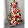 Im Sommer Europa und die Vereinigten Staaten neue Puffärmel hohe Taille Taille Druck Damenbekleidung großer Saum Trägerkleid