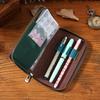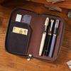 2026 First Layer Cowhide Three-pack Pencil Case Zipper Pen Storage Bag Plus Large Capacity Bill Stationery Case Pencil Case