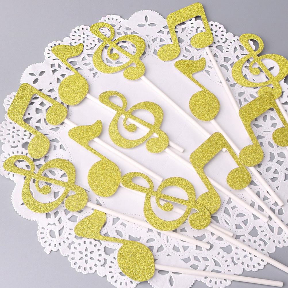 6 Stück Gold Musiknote Cupcake Topper Glitzer Kuchen Dekoration Geburtstagsparty Hochzeit Dessert Zubehör Musiknote Kuchen Topper