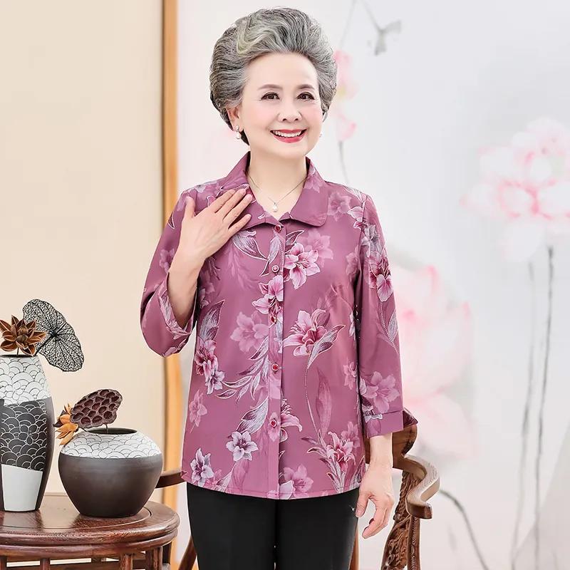 Geblümte Bluse für ältere Damen Locker Langarm Elegant Lässig Hemd